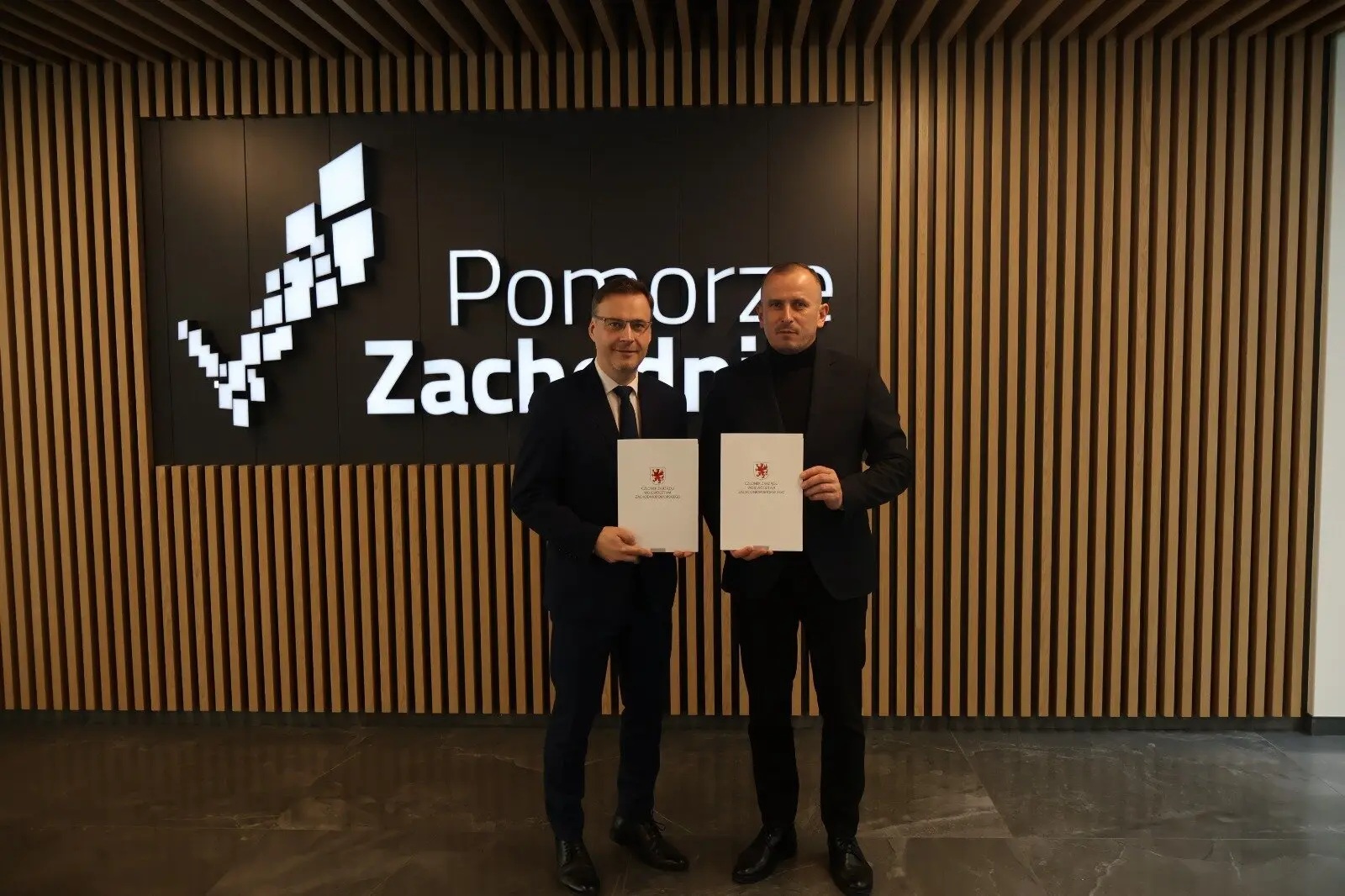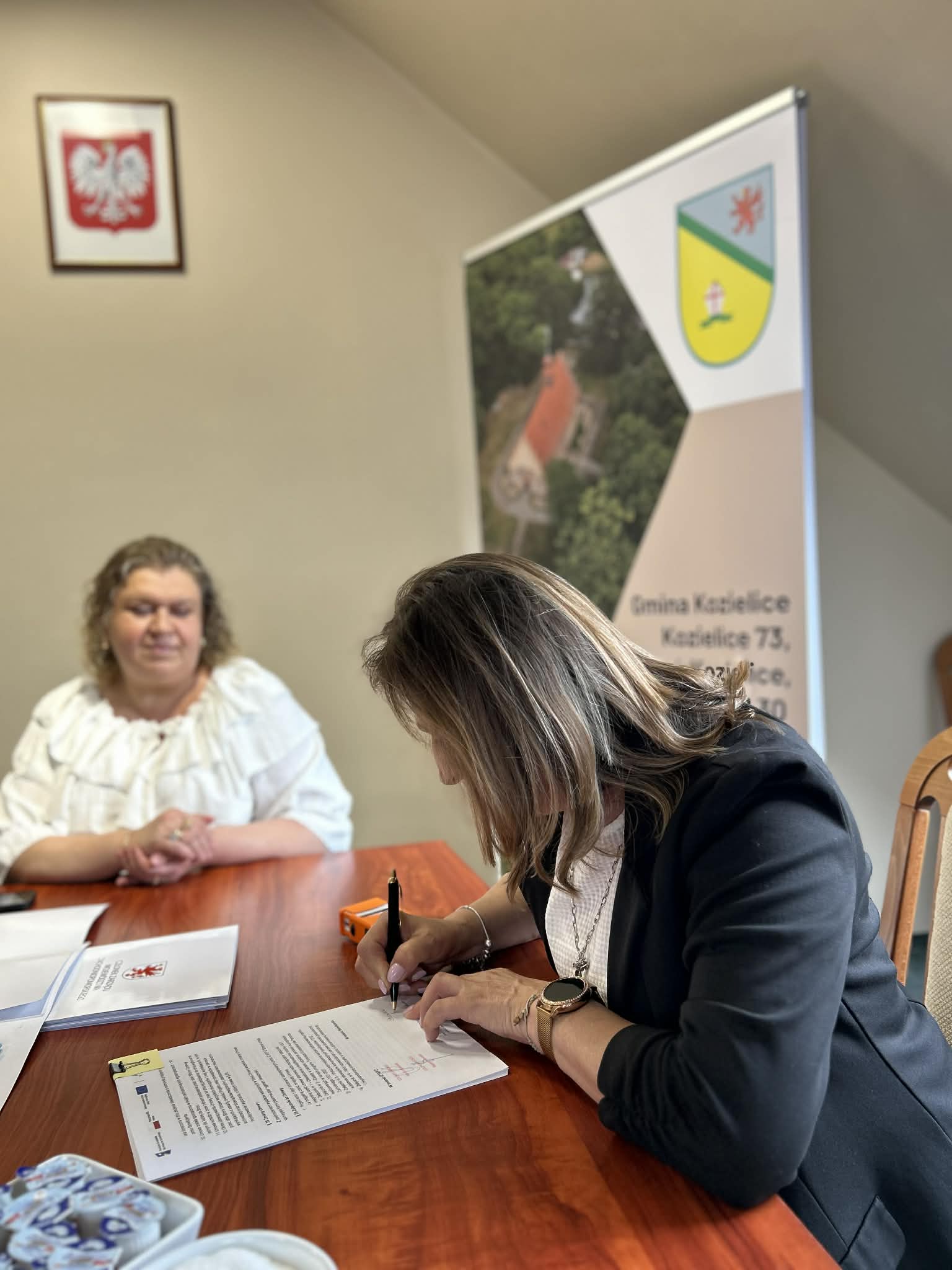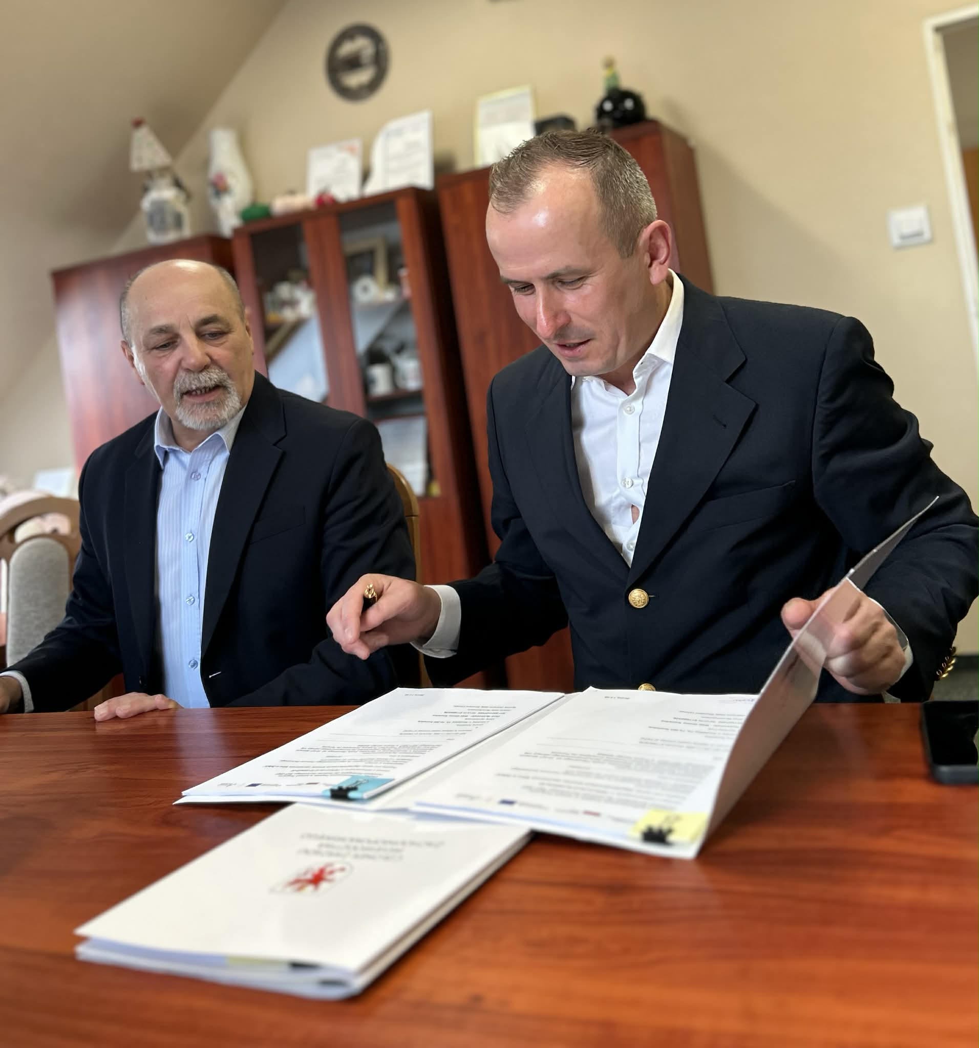 W dniu 25.03.2026 r. Wójt Gminy Kozielice Piotr Rybkowski podpisał z Członkiem Zarządu Województwa Zachodniopomorskiego Marcinem Łapecińskim dwie umowy o dofinansowanie na inwestycje: